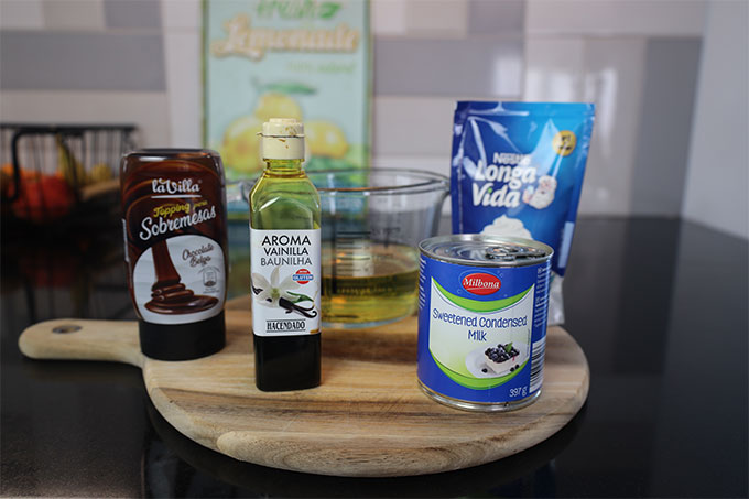 - 2 colheres de sopa de molho de chocolate ou de chocolate em pó